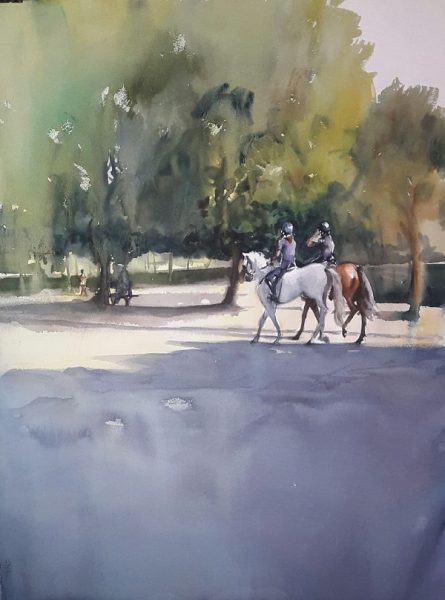 Como nos explica el comisario: “Sus acuarelas están pintadas con el cariño de un artista maduro, pero sin perder ese enlace con su infancia, su adolescencia y las vivencias de aquel “chaval” que encontró en el Parque de El Retiro, un refugio y un aliado; un lugar para observar y para ser libre, inmerso en el verde que protege, que difumina el recuerdo, hasta mostrarnos el sendero de la fantasía, de la imaginación.
