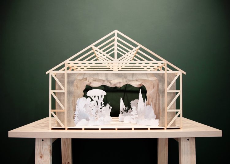 El escenario es “El gran jardín” que podemos acomodar a nuestro antojo. Su maqueta espera por el halago o la intromisión de la mirada inconforme. De cualquier forma, es más que el descubrimiento del proceso artístico, más que el paso anterior a la pintura, es ella misma objeto escultórico, la evidencia de que podemos ser quiénes configuren su propio contexto. Es de esperar que Ernesto domine todo lo que conforma una puesta en escena, todo aquello que estructura y hace posible el emplazamiento del acto teatral. En el año 2021 se graduó de la especialidad de Diseño Escénico por la Universidad de las Artes en La Habana (ISA), disciplina que ha inspirado su obra visual y de la que ha extraído, además, una metodología acertada y oportuna para la confección del dispositivo artístico.