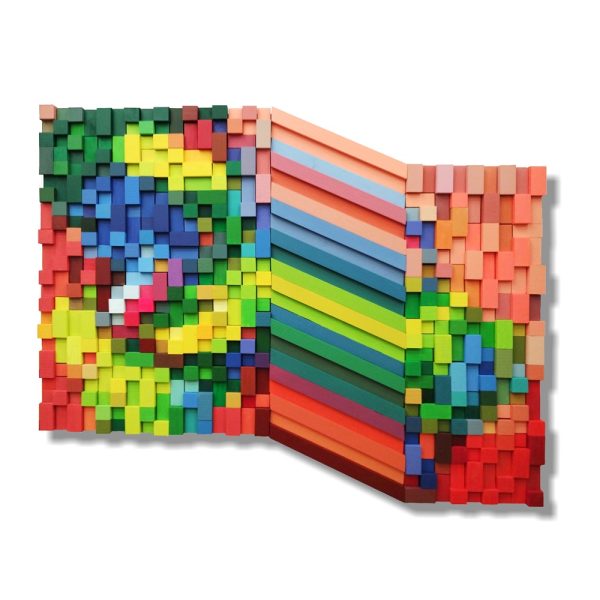 Eva Menezz (Madrid, 1981) es una artista plástica enfocada en lo que ella denomina pintura escultórica. Crea obras caracterizadas por la bidimensionalidad; a priori son pinturas debido a ese rasgo, pero están compuestas por un marcado relieve. Cennino Cennini dijo en su obra que el relieve, el volumen, se podía obtener trabajando el claroscuro, pues fue un pintor situado en los albores del Renacimiento. Sin embargo, esta idea de lograr volumetría en una pieza resultó muy importante para el arte posterior, llegando hasta nuestros días. Menezz, percatándose asimismo de lo capital que es alcanzar el volumen, en lugar de usar la línea y el color, decide no recurrir a la emulación y recrearlo directamente. De este modo, para nuestra protagonista prima el elemento en tres dimensiones que se incorpora a la obra plana en origen. Se trata, sobre todo en su última serie titulada Blocks, de trabajar la superficie con bloques de madera adheridos, creando una composición de carácter abstractivo porque parte de la realidad visible y la descompone en formas prismáticas que luego ella colorea a mano con acrílico.
